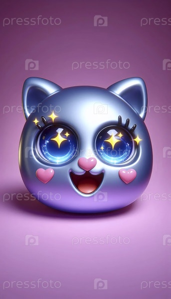 3D симпатичный кошачий эмодзи с глазами сердца, Ai generated image A