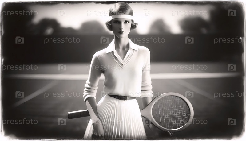 Теннисный игрок 1920-х годов в белом, Ai generated image