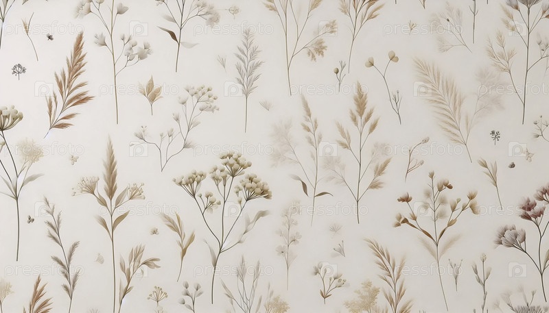 Мягкий бежевый цветочный бесшовный рисунок, Ai generated image