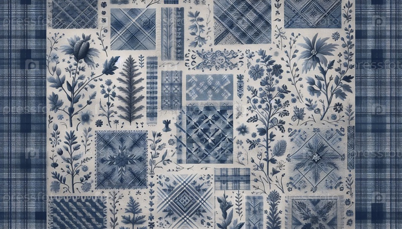 Винтажная хлопковая ткань 1800-х годов коллекция Vintage Blues бесшовный рисунок, Ai generated image