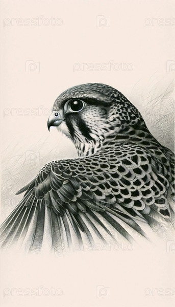 A swift falcon ink drawing art print, Ai generated image Авиационный принт с чернилами сокола