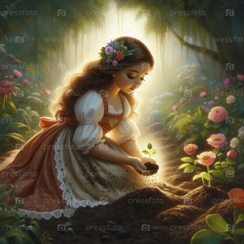 Принцесса сажает волшебное семя акварельный арт-принт, Ai A generated image