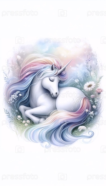 Мечтательный единорог с радужным рогом акварельный арт-принт, Ai generated image