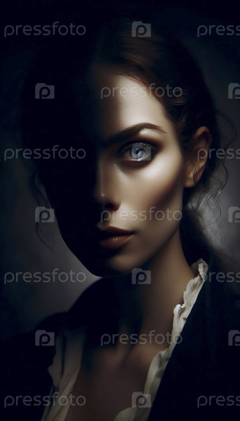 Портрет с полумакированным глазом в тени, глядя прямо на него, Ай создал изображение