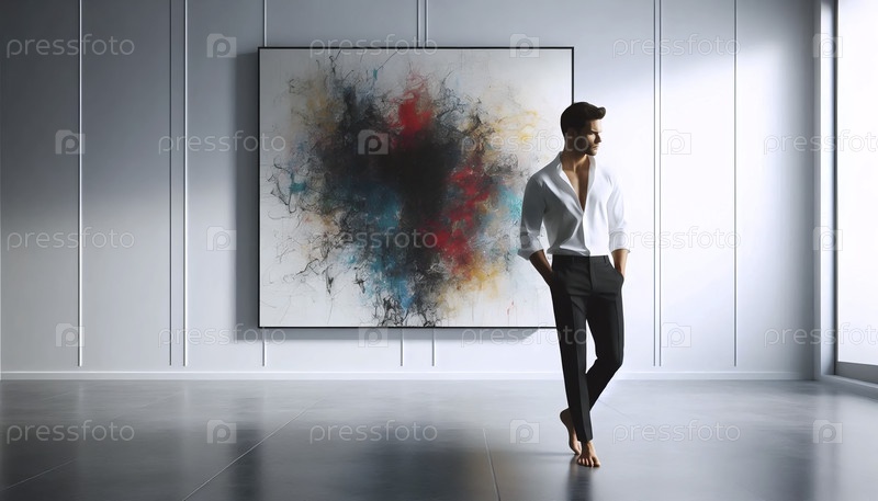 Мужчина в белой рубашке на чердаке с абстрактным искусством, Ай создал изображение