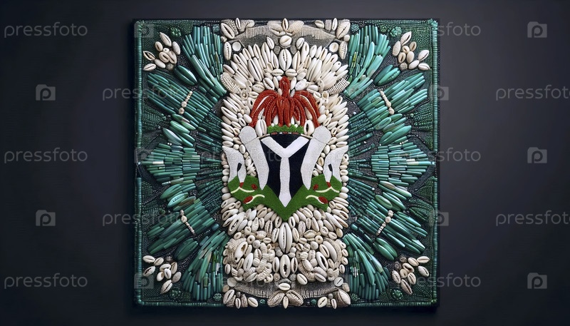 Нигерийский флаг в традиционной бусинке и искусстве йорубы, Ai generated image