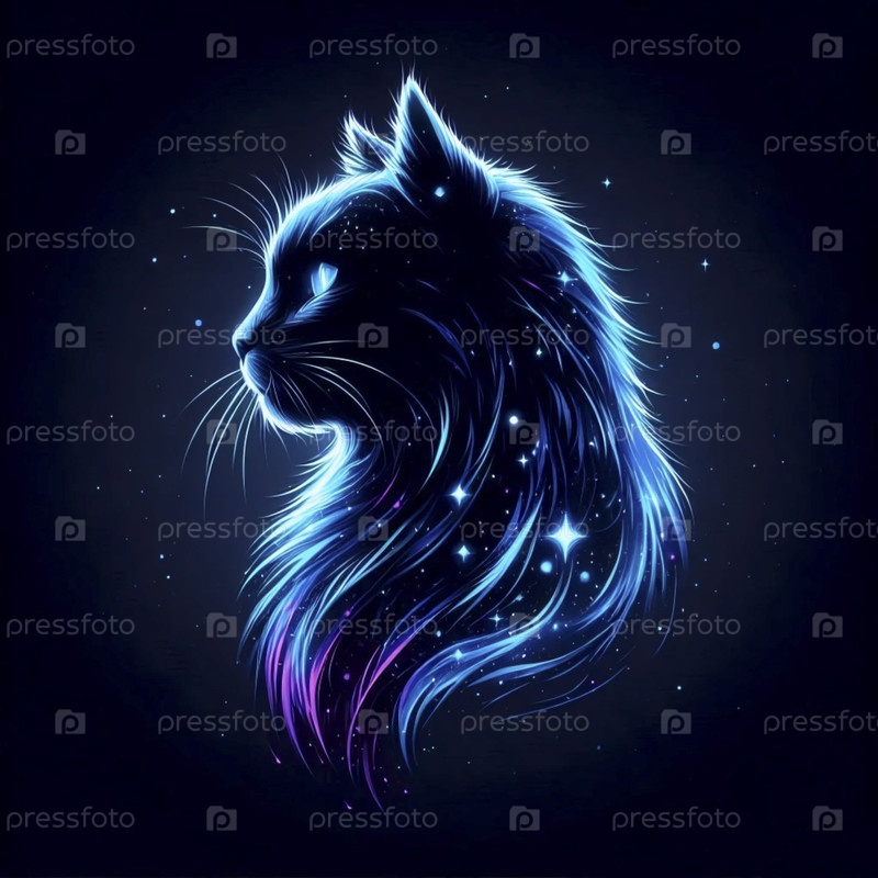 Светящийся неоновый силуэт кошки на темном фоне, Ai generated image