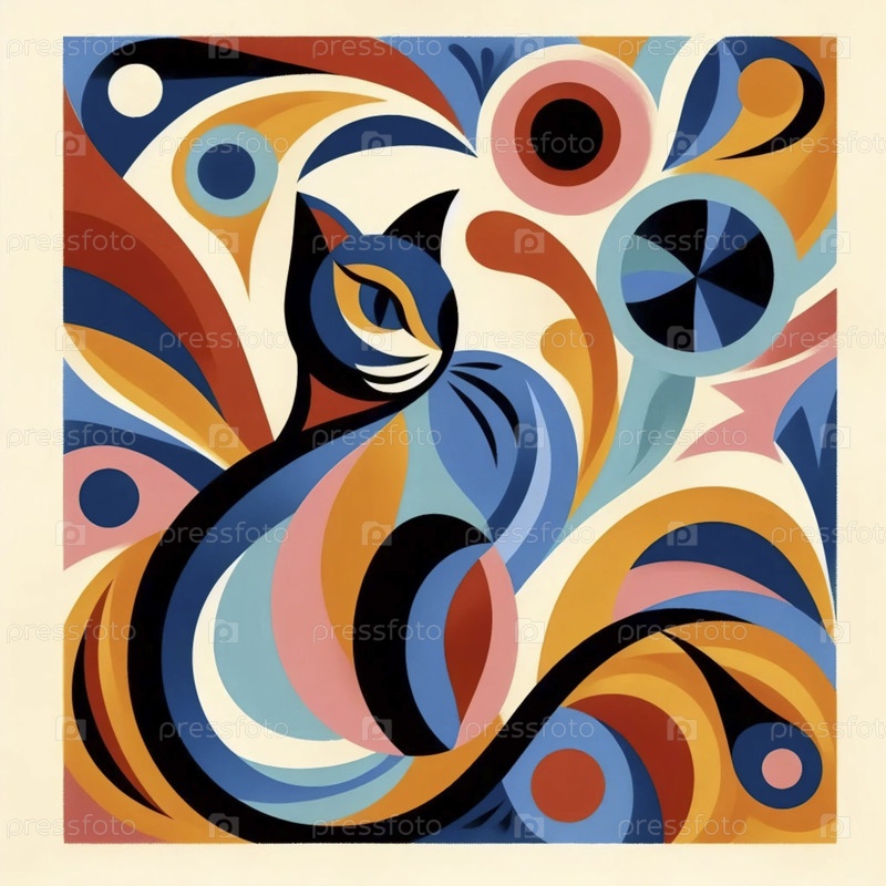 Красочный кошачий плакат в стиле Матисса, Ai generated image A