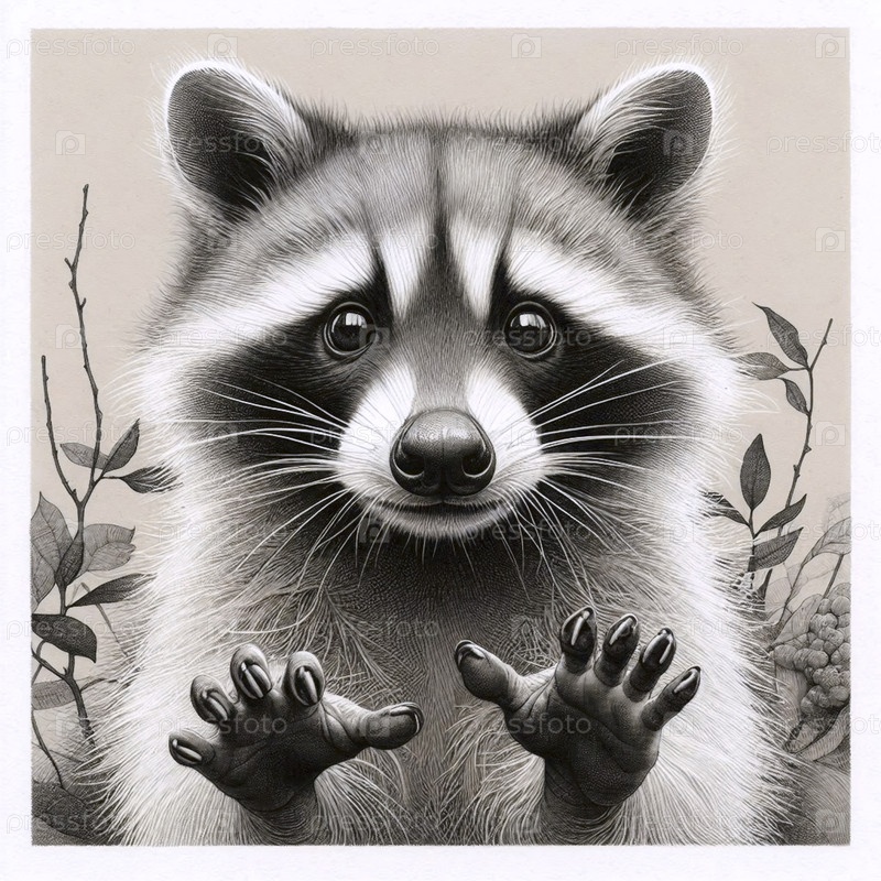 A mischievous raccoon ink drawing art print, Ai generated image (Ai создал изображение с чернильным рисунком енота)