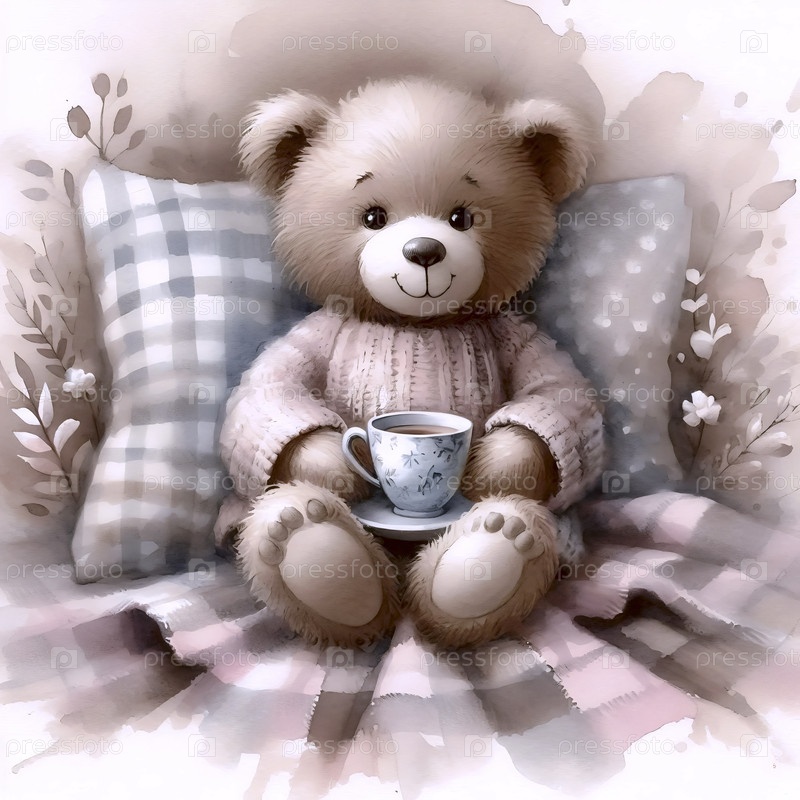 Teddy Bear Having a Picnic Водяной художественный печат, Ай создал изображение