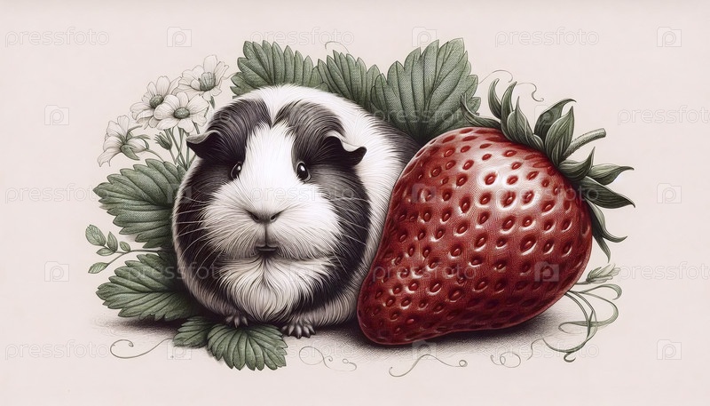 морской свинка со чернильным рисунком клубники