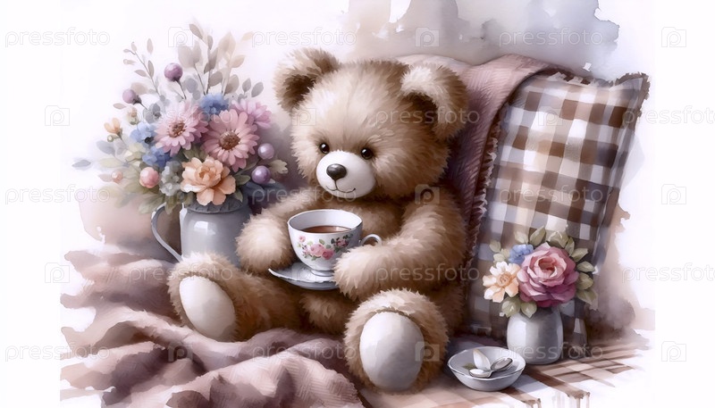 Teddy Bear Having a Picnic Водяной художественный печат, Ай создал изображение