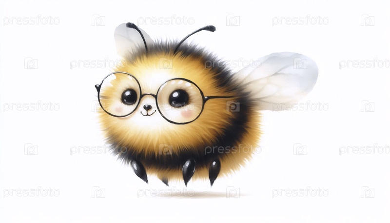Бамблби с крошечными очками Акварельная художественная печать, Ai generated image