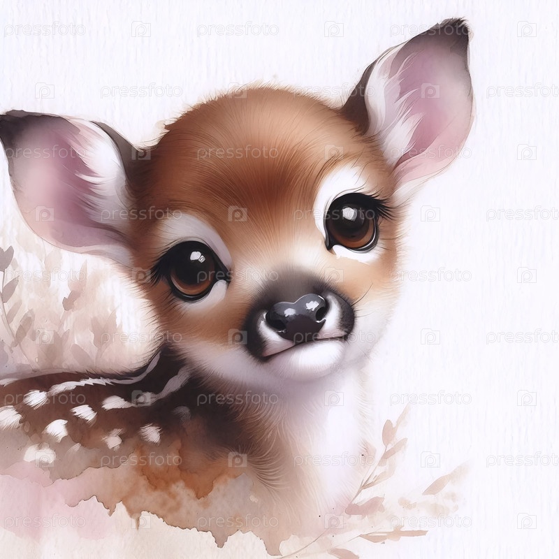 A Pleading Fawn акварельный художественный печат, Ai generated image