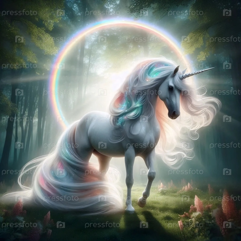 Единорог с радужным ореолом, Ai generated image