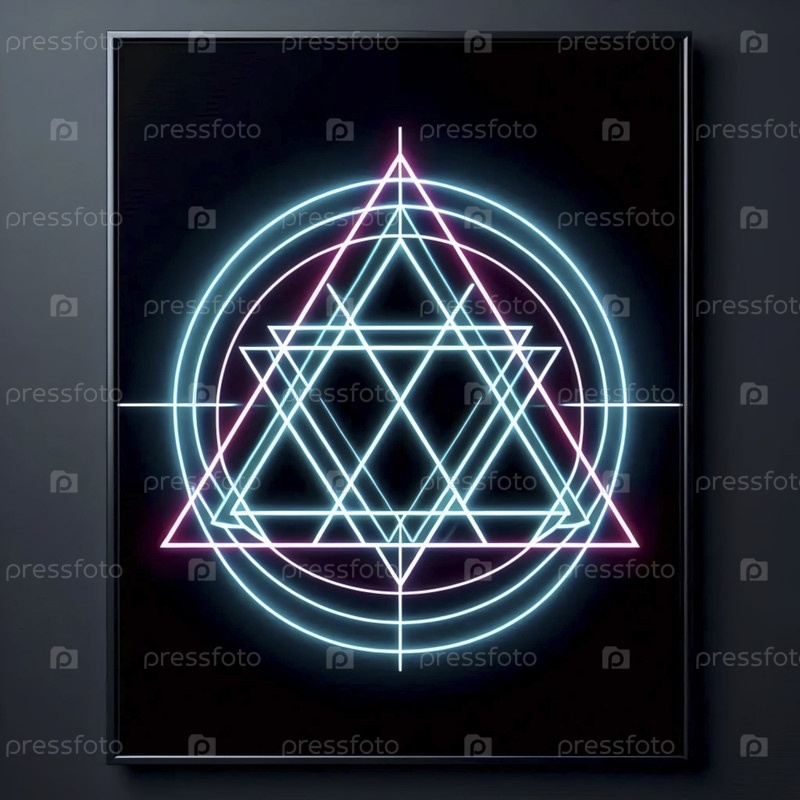 Цифровой неоновый геометрический художественный плакат, Ai generated image A