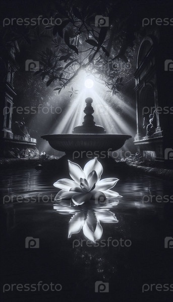 Одинокая белая гардения плавает в мраморном фонтане, Ai generated image