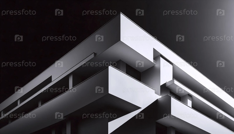 Черно-белый фотографический принт современной архитектуры середины века, Ai generated image