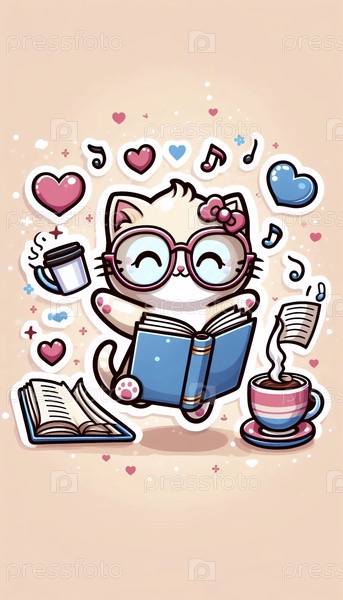 Ученый кот с очками и иллюстрацией к книге, Ai generated image