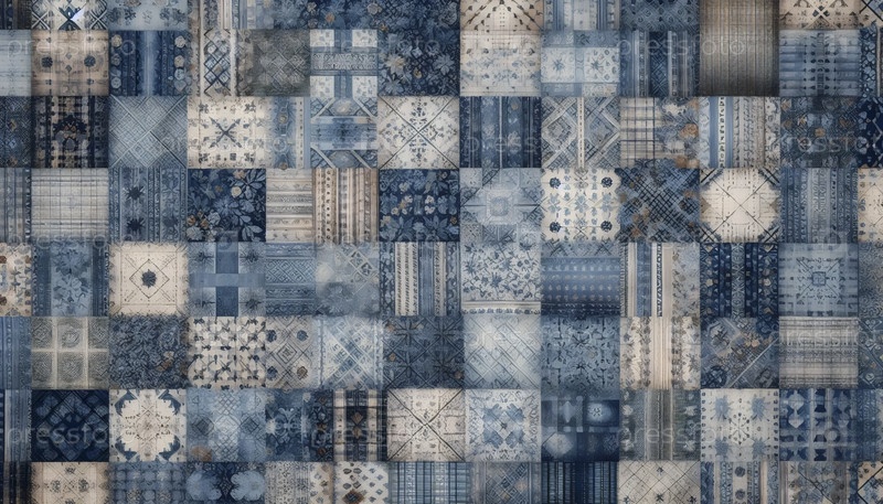 Винтажная хлопковая ткань 1800-х годов коллекция Vintage Blues бесшовный рисунок, Ai generated image