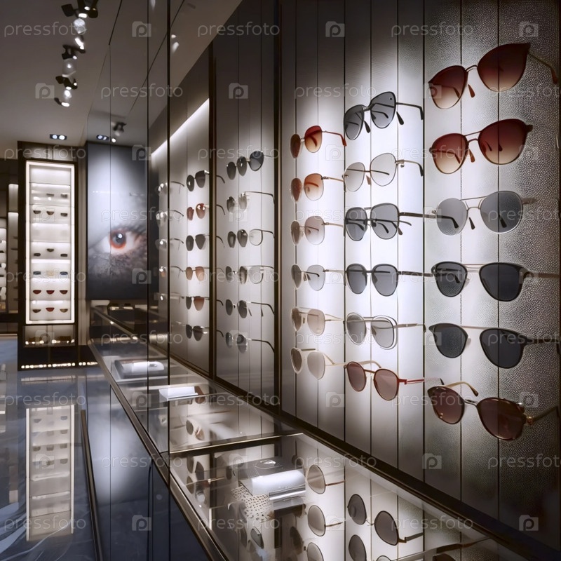 Современная стена для отображения солнцезащитных очков, Ai generated image