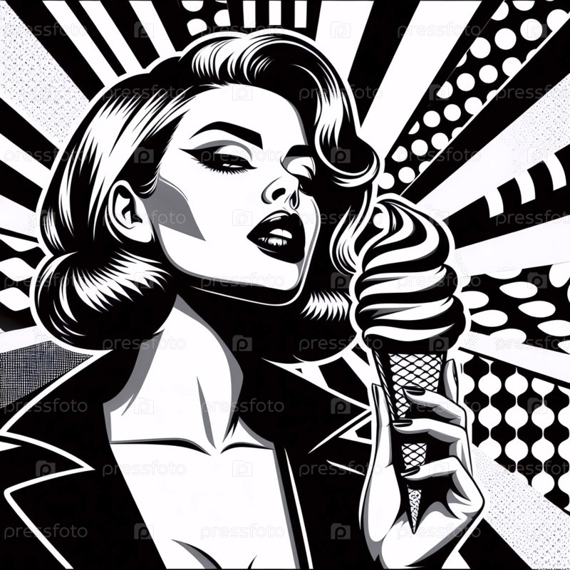 Поп-арт мороженое с высоким контрастом, Ai generated image