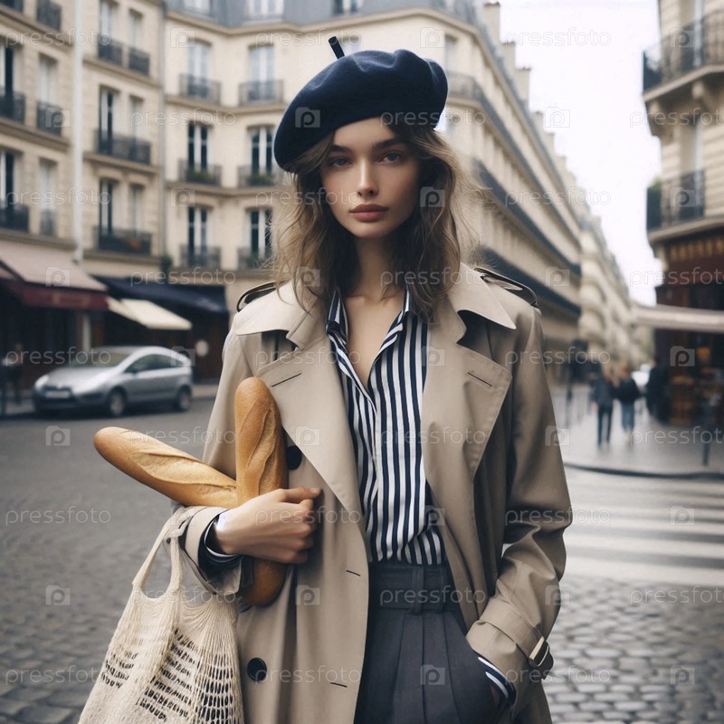 Парижская девушка с беретом и багеттой, Ai generated image