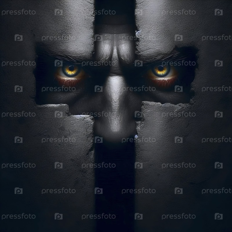 Глаза, заглядывающие через узкую щель в стене, Ai generated image