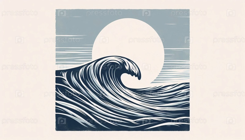 Винтажный минималистический печатный принт океанских волн, Ai generated image