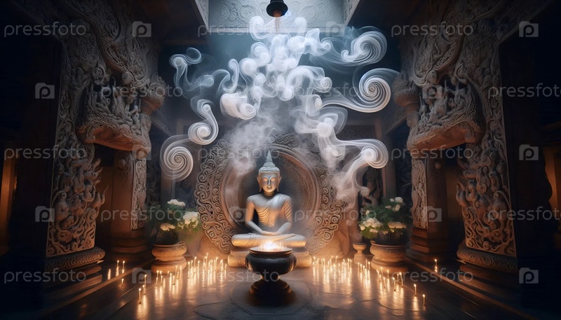 Дым буддийского фимиама, Ai generated image
