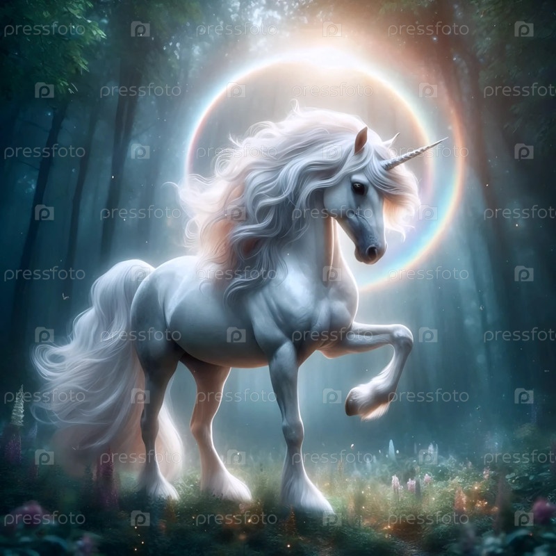 Единорог с радужным ореолом, Ai generated image