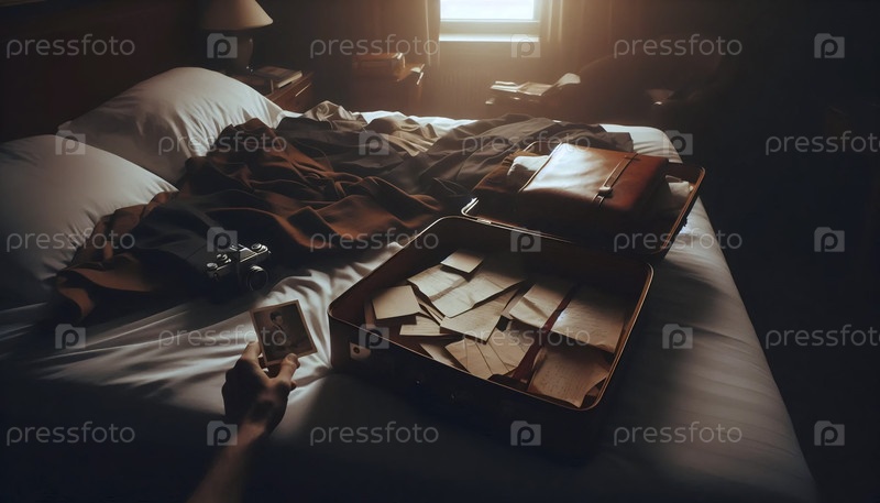 A sepia tone suitcase decision, Ai generated image Решение о чемодане с сепией тоном, созданное Ай