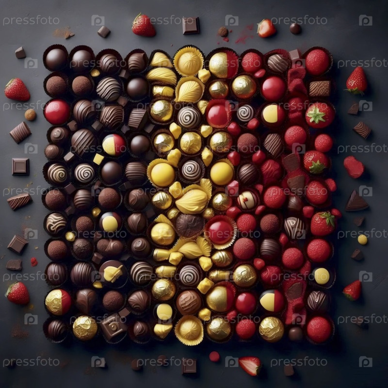 Бельгийский флаг в ассортименте шоколадных пралин, Ai generated image