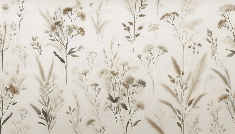 Мягкий бежевый цветочный бесшовный рисунок, Ai generated image