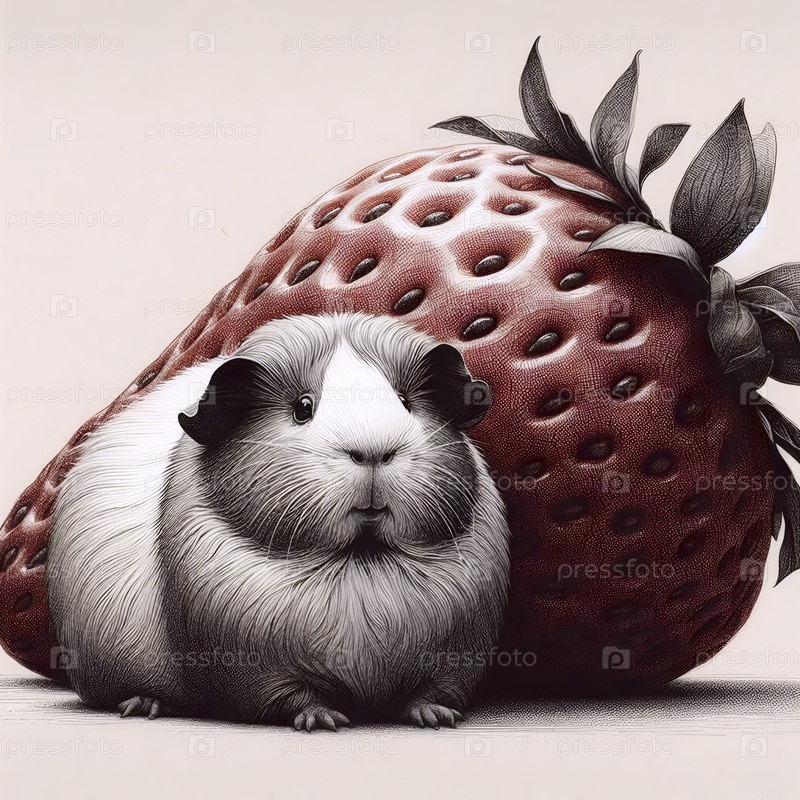 Морская свинья с чернилами клубники рисует художественный принт, Ai generated image