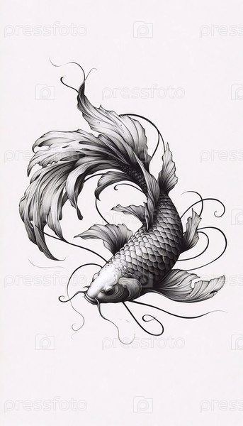 рисунок с чернилами для рыб koi fish ink drawing