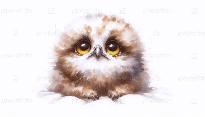 А Pretty Owl акварельный художественный печат, Ai generated image