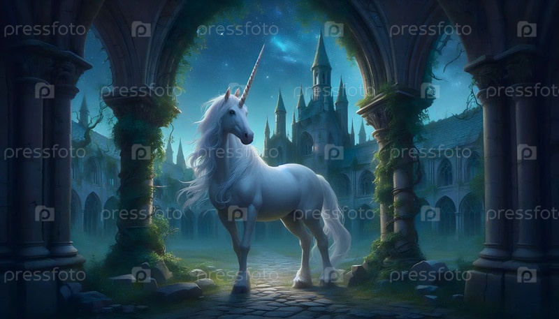 Единорог в зачарованном замке, Ai generated image