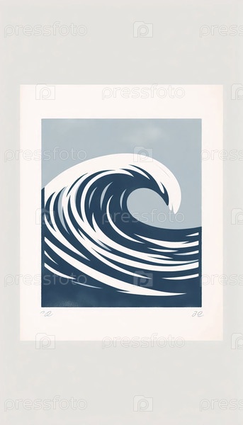 Винтажный минималистический печатный принт океанских волн, Ai generated image