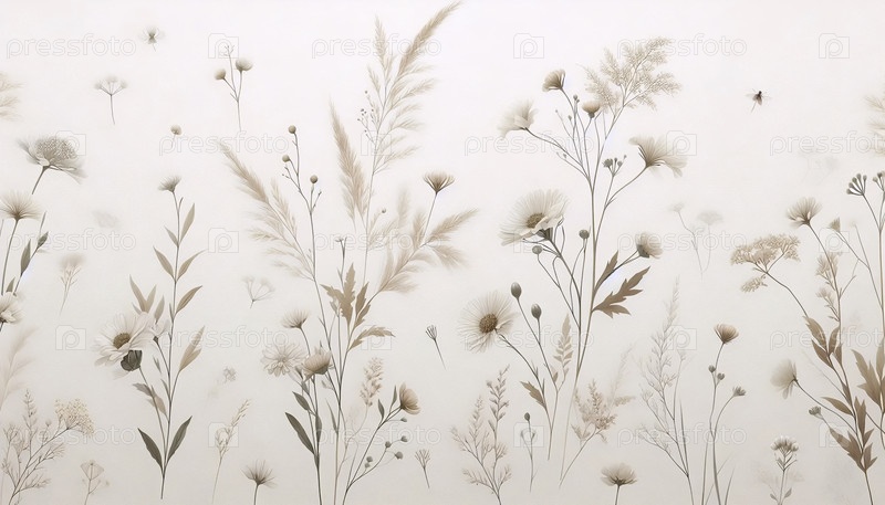 Мягкий бежевый цветочный бесшовный рисунок, Ai generated image