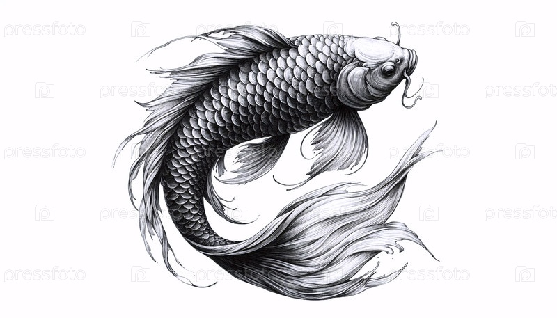 рисунок с чернилами для рыб koi fish ink drawing