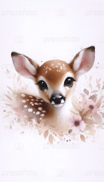 A Pleading Fawn акварельный художественный печат, Ai generated image