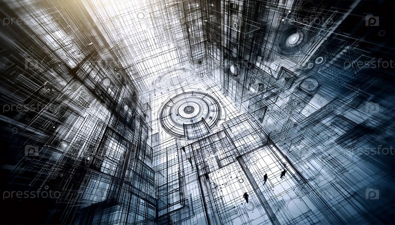 Геометрические узоры в архитектурных чертежах, Ai generated image