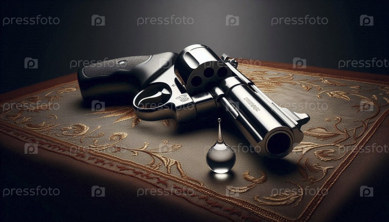 Капля святой воды, качающаяся по стволу пистолета, Ai generated image
