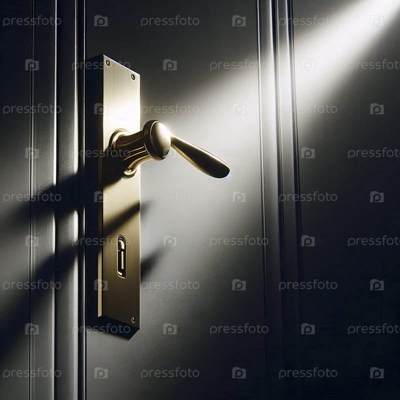 Макет одной латунной дверной ручки на матовой поверхности двери из древесного угля, Ai generated image