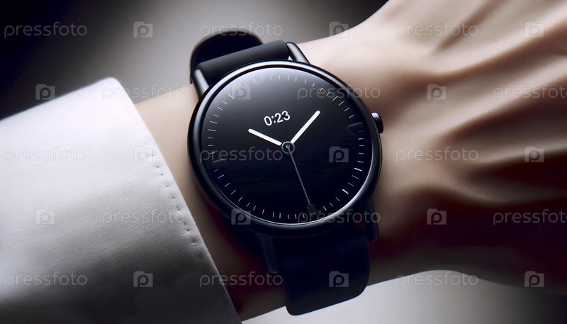 Мокет смарт-часов на запястье, отображающий минимальную пустую линию часов только с маркерами времени, Ai generated image