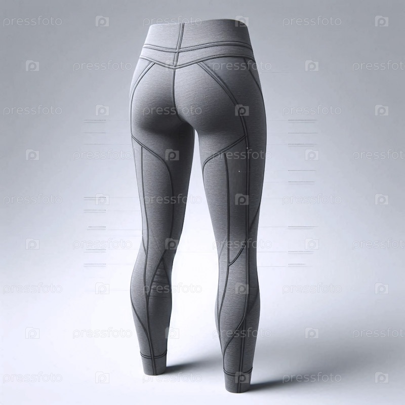 Мокет пары спортивных леггинсов с высокими талиями в сером цвете, положенный плоско, чтобы показать контурные швы, Ai generated image