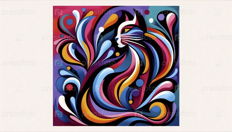 Красочный кошачий плакат в стиле Матисса, Ai generated image A