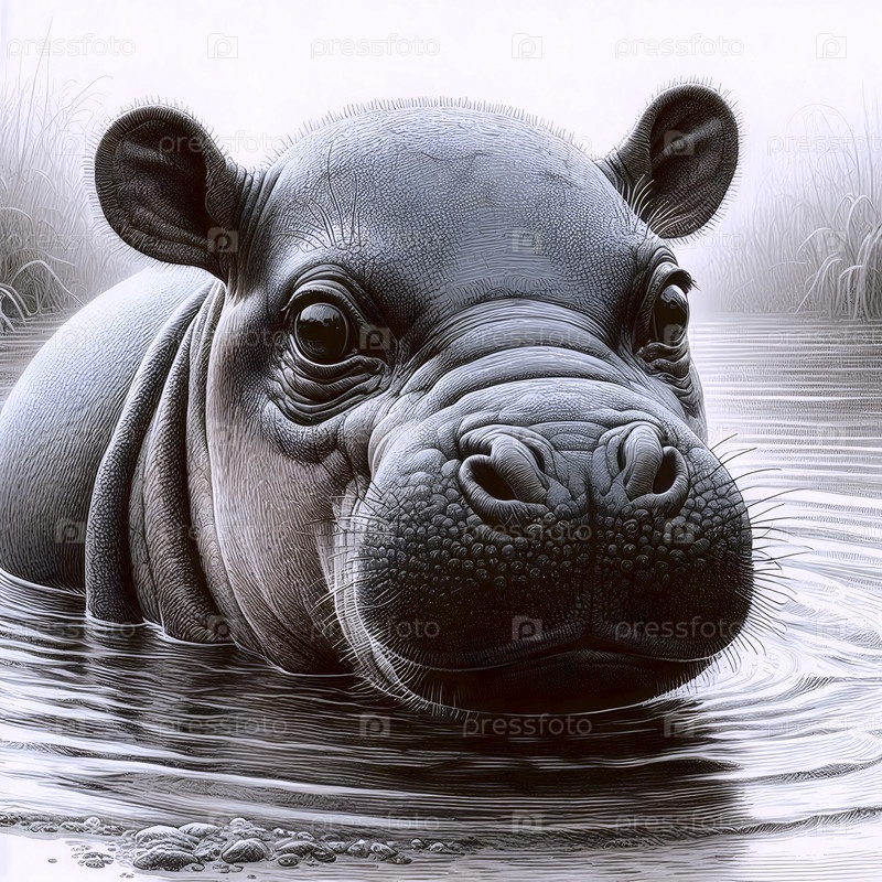 Малыш карликового бегемота в мелководной чернице рисует художественную печать, Ai generated image