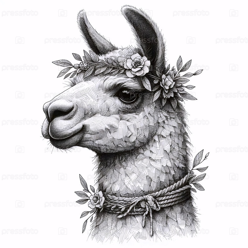 Ллама с цветочными чернилами рисование художественная печать, Ai generated image